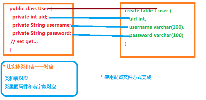 3 orm:object relational mapping,对象关系映射 文字描述: (1)让实体类和数据库表进行一一对应关系 让实体类首先和数据库表对应 让实体类属性 和 表里面字段对应 (2)不需要直接操作数据库表,而操作表对应实体类对象