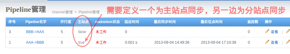 * 注意:除了需要定义一个主站点外,需要在高级设置中将一个pipeline的“支持DDL”设置为false,另一个设置为true,否则将提示“一个channel中只允许开启单向ddl同步!”错误