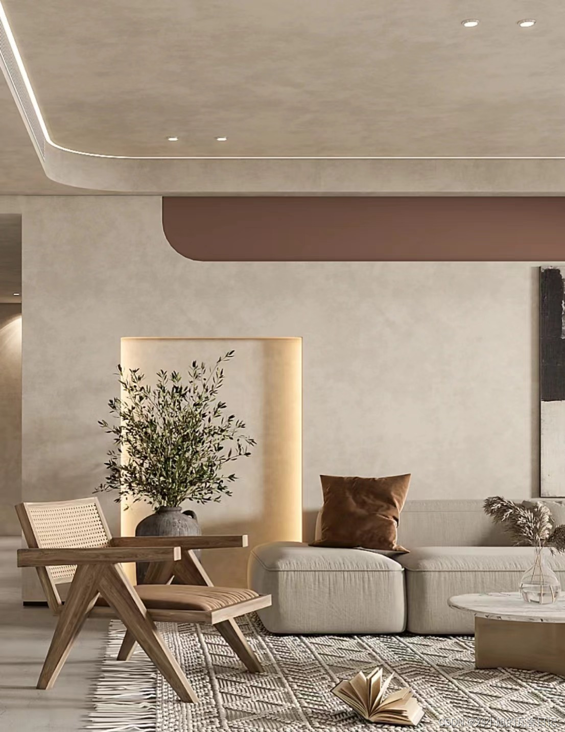 博客介绍了侘寂风空间的营造方法。从大自然汲取灵感,用温润木皮营造质朴感,通过弧面等弱化线面穿插。色彩克制,以中性色为主。强调质地关键,用原始漆料搭配中性色调。还提到用自然元素取色,用藤编等元素点缀平衡视觉。
