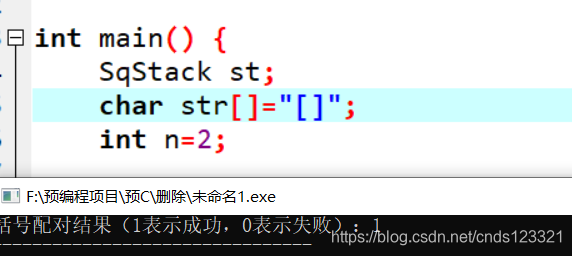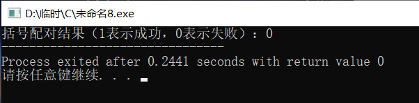 printf("括号配对结果(1表示成功,0表示失败):%d",r);