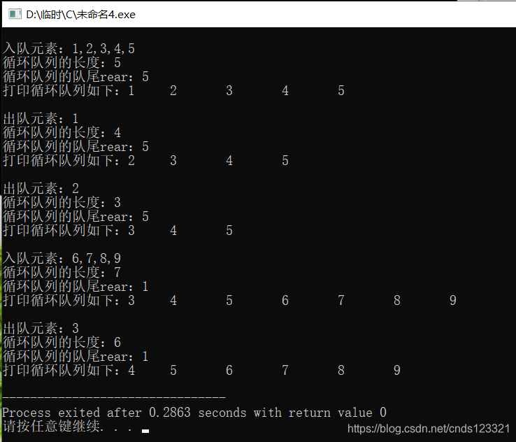 printf("入队元素:6,7,8,9\n");