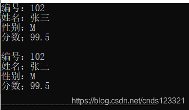 printf("编号:%d\n姓名:%s\n性别:%c\n分数;%1.1f\n", student2.num, student2.name, student2.sex, student2.score);