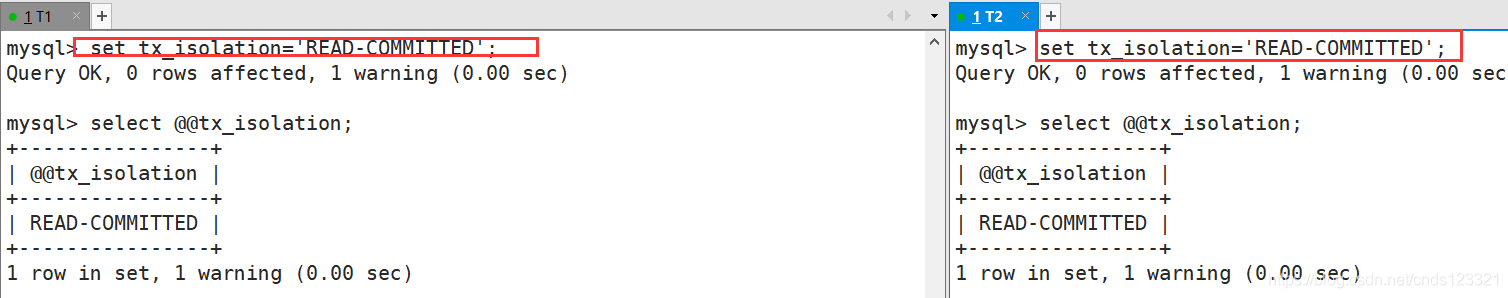 那么如何解决脏读问题呢?MySQL数据库专门为解决这些问题提出了隔离级别,现在将隔离级别提升到READ COMMITED读取已提交,就能够解决脏读问题了。