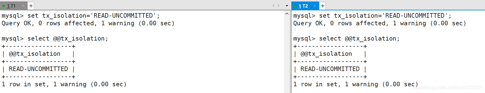 使用set tx_isolation='READ-UNCOMMITTED';命令修改隔离级别为最低的READ UNCOMMITED读未提交。