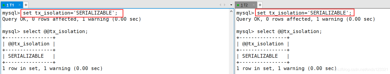 先在数据库种执行select @@tx_isolation命令查看当前数据库的隔离级别。