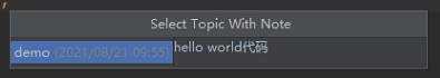 在弹出的面板中输入topic和备注内容。然后点击前面的topic按钮(这里就是"demo"),就会添加到笔记中。