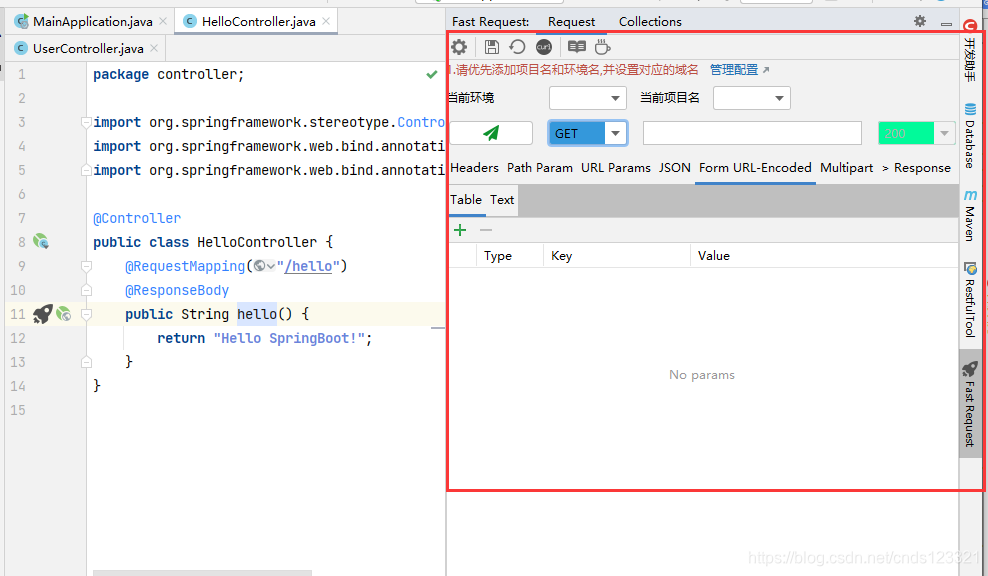 Fast Request 是一个基于 springmvc 的你快速帮助生成url和参数的插件。同时也是一个帮助客户端的http客户端工具。快速请求你在IDEA界面内更快更高效地调试你的API。