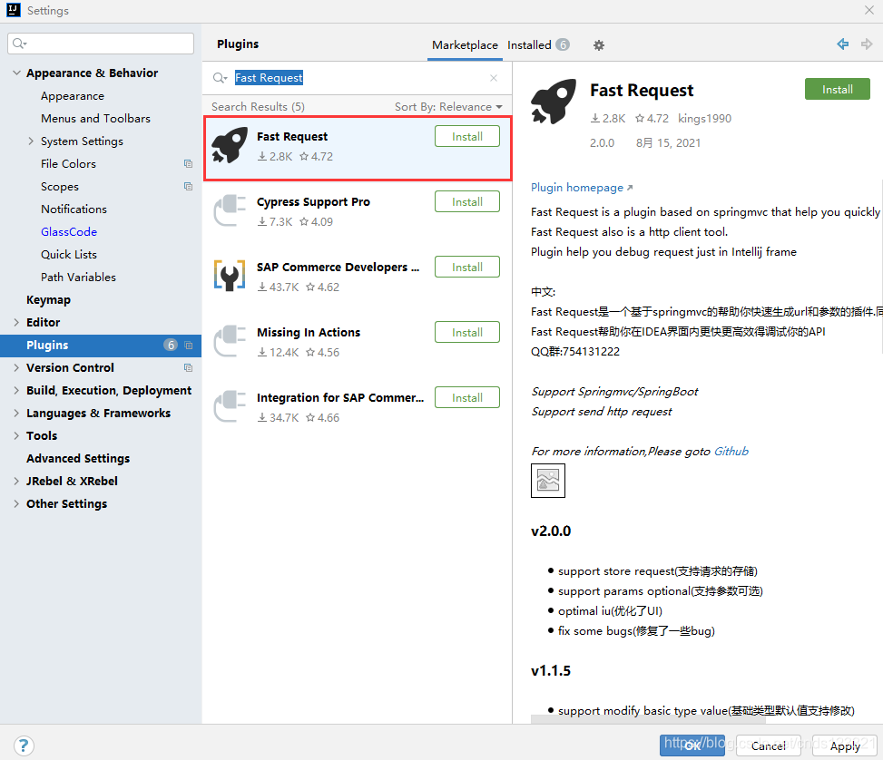 插件下载地址:https://plugins.jetbrains.com/plugin/16988-fast-request/