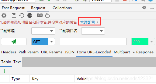 需要先进行项目名和域名的配置,点击红色字体后面的“管理配置”链接,打开设置进行配置。