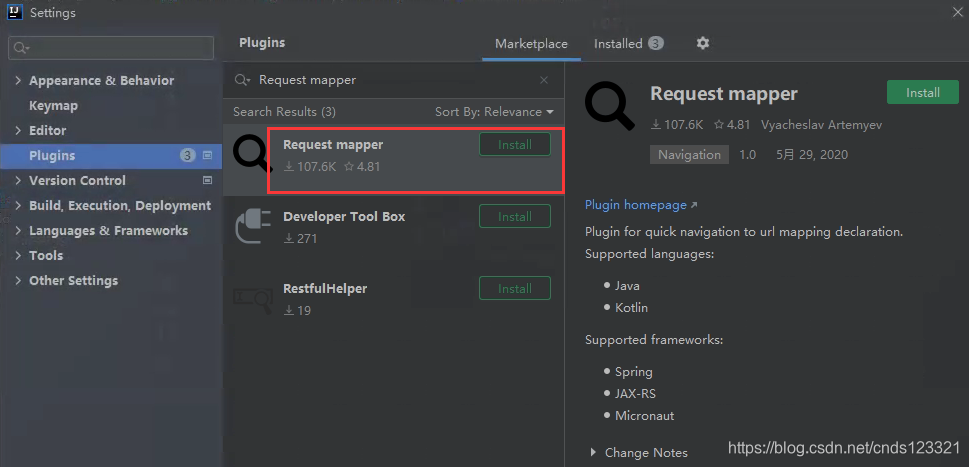 插件下载地址:https://plugins.jetbrains.com/plugin/9567-request-mapper