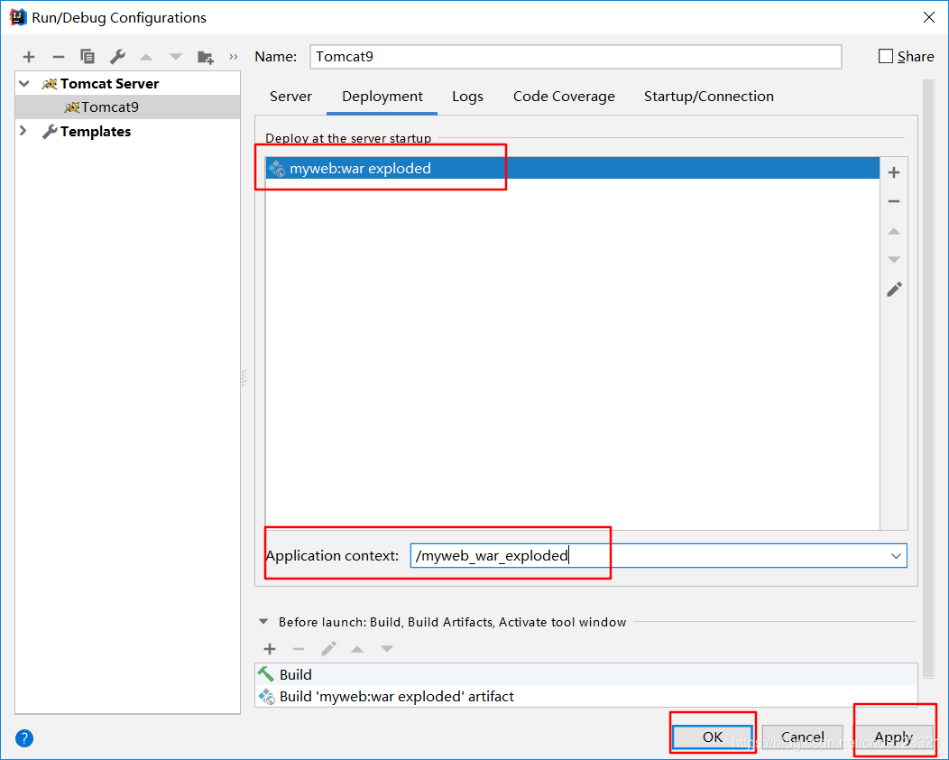 选择web项目 -> Application Context可以填“/firstweb”(也可以不填) -> Apply