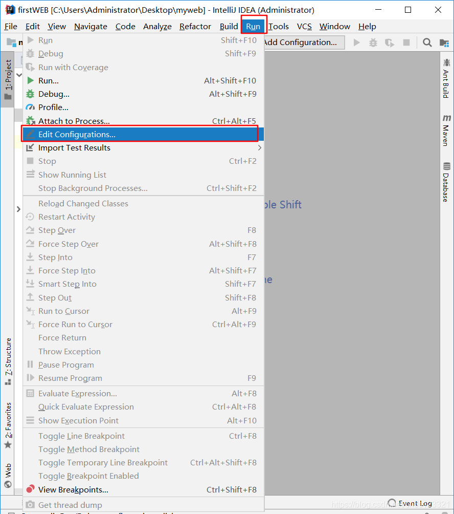 打开菜单Run -> Edit Configurations...