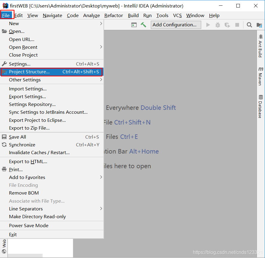 File -> Project Structure (ctrl + shift + Alt + s) 或者使用工具栏的快捷键 -> 选择Modules