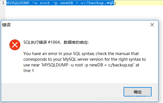 myqldump不是sql语句,mysqldump是mysql用于转存储数据库的实用程序。