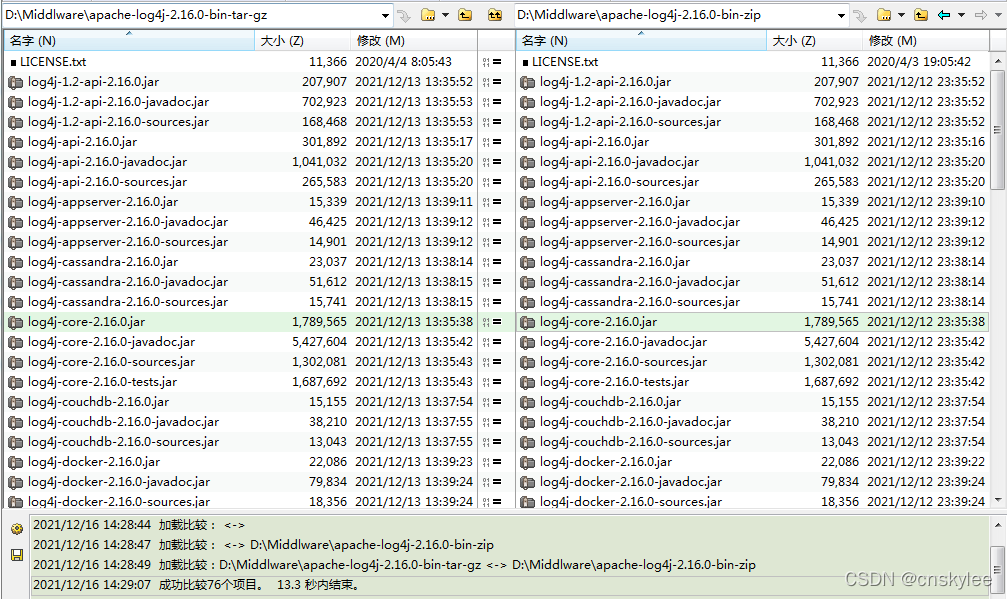 虽然,官方给出了两种压缩格式的包,但是经过Beyond Compare对解压后的压缩包里面的文件对比发现,这两个包里面的文件一模一样。