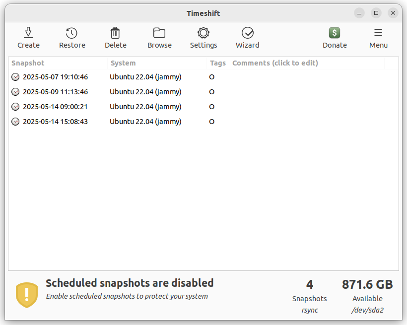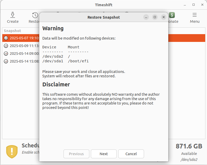 在安装ROS、显卡驱动、NVIDIA Issac相关软件时,经常会出现很多bug需要修复,在更新软件或者依赖项时,时常会让系统装得乱七八糟,甚至崩溃黑屏。为避免之前的工作前功尽弃,最好对系统进行备份,在需要的时候就可以方便还原到之前的某个版本。