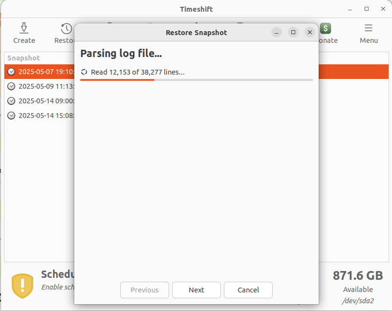 恢复过程如下,选择某个时间的备份文件,点Restore。按默认选择,Next逐步运行,即可恢复到备份的系统,如下所示。