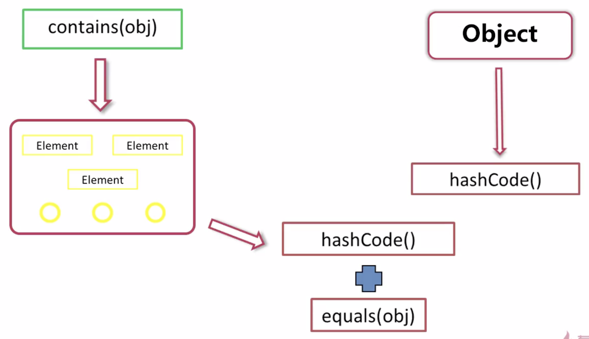 Set对象的contains方法跟List实现方式不一样,是先调用hashCode()方法返回hash码,如果hash码一致,再调用equals()方法。