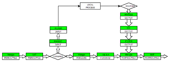 下面的这张图清晰的描绘了netfilter对包的处理流程