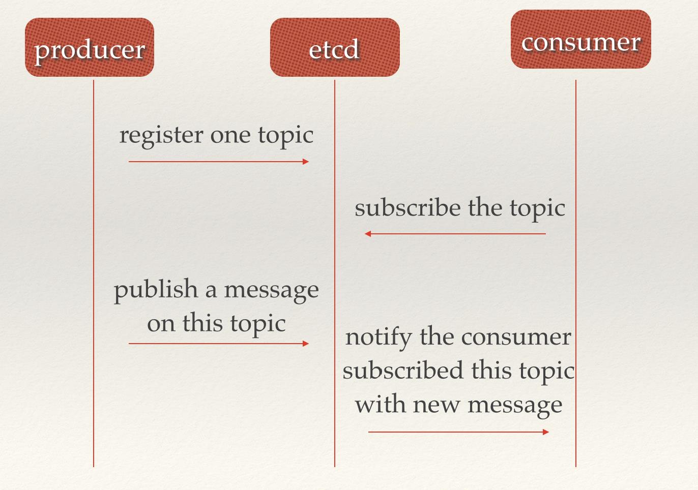 这里说到的分布式通知与协调,与消息发布和订阅有些相似。都用到了etcd中的Watcher机制,通过注册与异步通知机制,实现分布式环境下不同系统之间的通知与协调,从而对数据变更做到实时处理。实现方式通常是这样:不同系统都在etcd上对同一个目录进行注册,同时设置Watcher观测该目录的变化(如果对子目录的变化也有需要,可以设置递归模式),当某个系统更新了etcd的目录,那么设置了Watcher的系统就会收到通知,并作出相应处理。