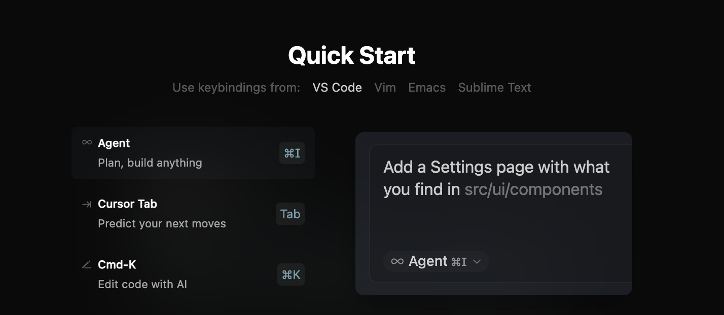 1. 功能:cursor and code command实际上是两个命令的组合,即code .和cursor .。code .命令用于启动Visual Studio Code(VSCode),而cursor .命令则用于启动Cursor编辑器。通过在命令行中输入不同的命令,用户可以选择使用VSCode或Cursor来打开当前目录。 -