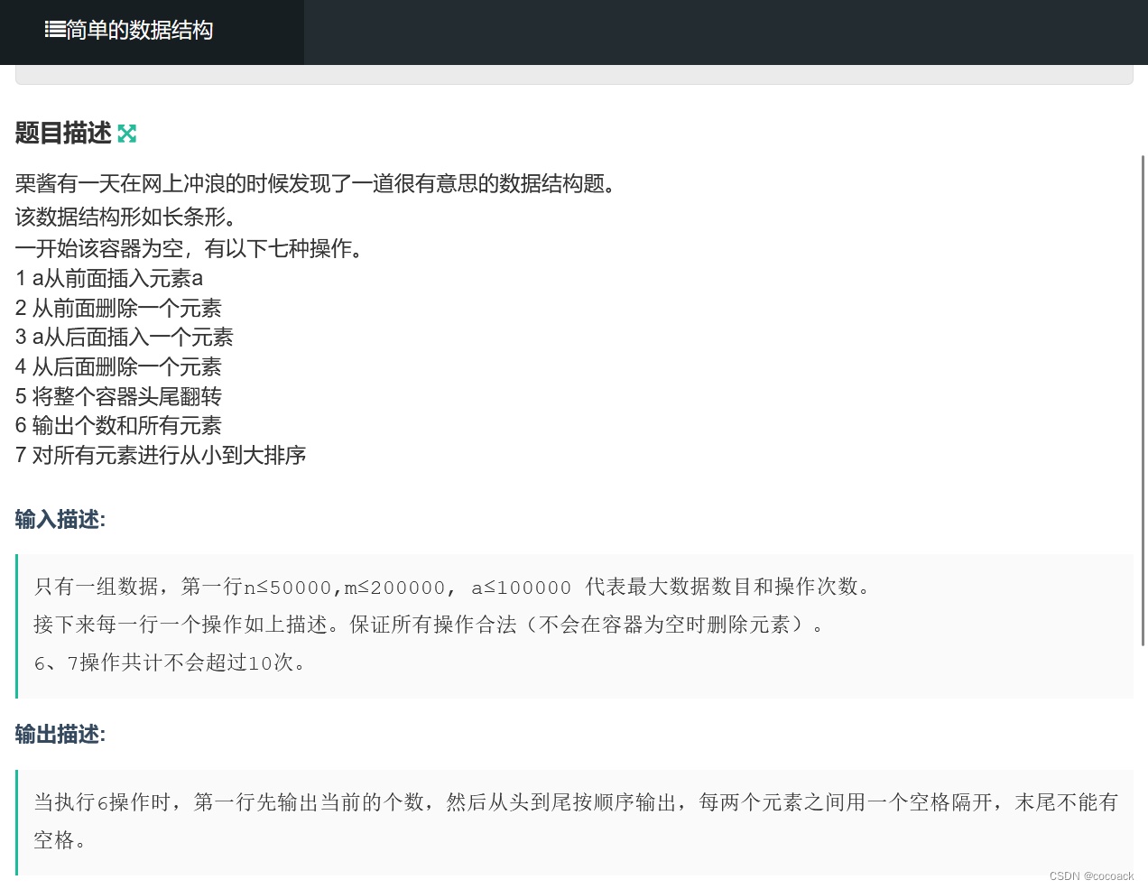 前4个操作我们可以用deque解决,第5个我们不用真的去反转,调换一下头尾即可。