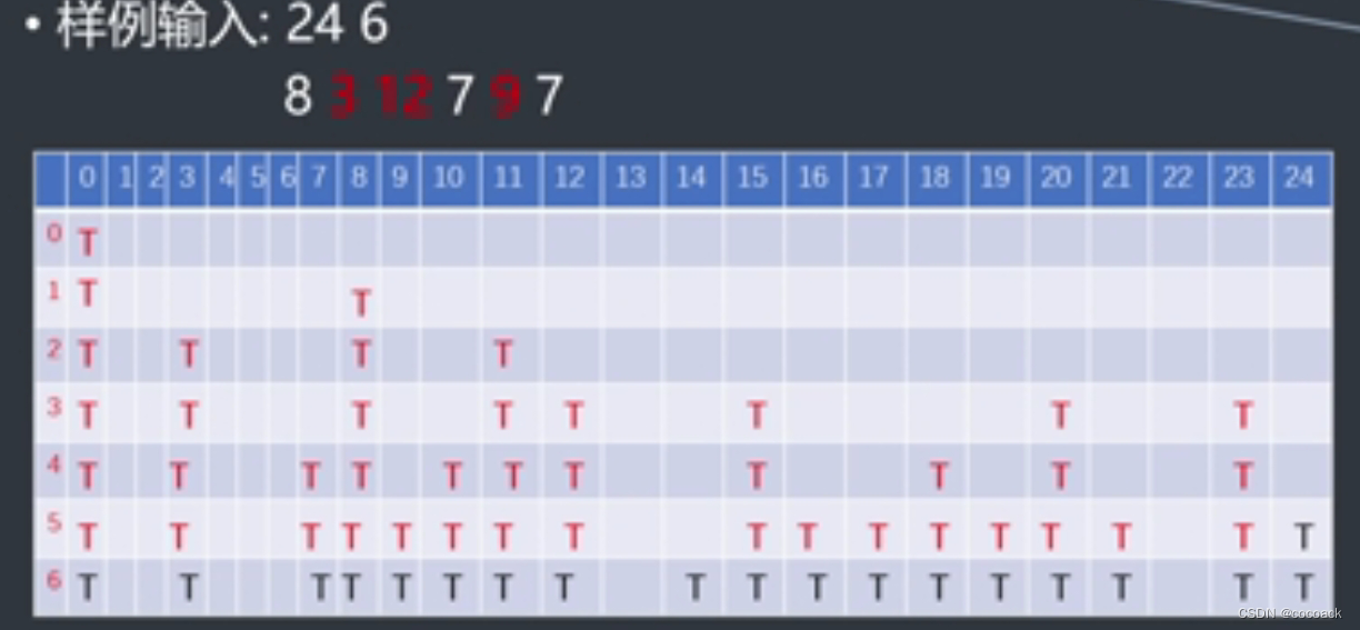 f[i][j]=f[i-1][j]||f[i-1][j-v[i]]; f[0][0]=1;