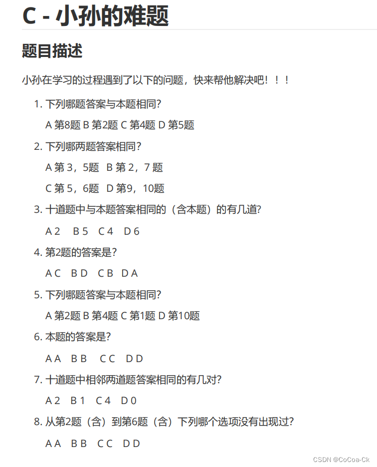 4^10*10的复杂度可以接受,于是DFS,接下来就是一堆判断了,下面是代码(貌似好像DBCCDCBACD也没有问题):