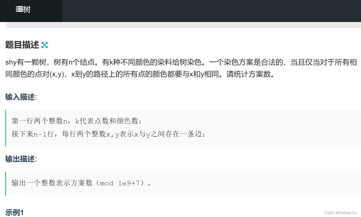 我们先按DFN,我们发现一个点要么跟父亲一样,要么是一个从来没有出现的点,这个就是合法的,于是我们令dp[i][j]表示走到i时用了j种颜色的方案数,易得状态转移方程: