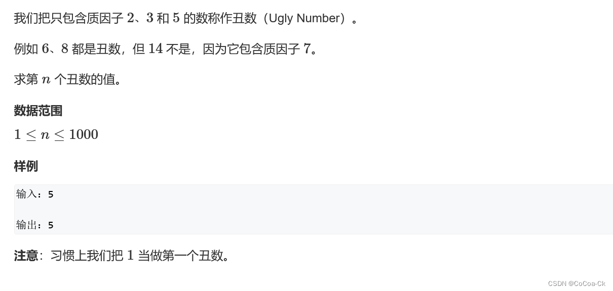 首先我们把1放入丑数,令i,j,k指向它(代表2,3,5),然后我们选min的成1,变成2,此时i指向2,然后我们再从3,5,2*2中选min的3,此时j指向2,依次类推,每用一次就向后移一下。下面是AC代码: