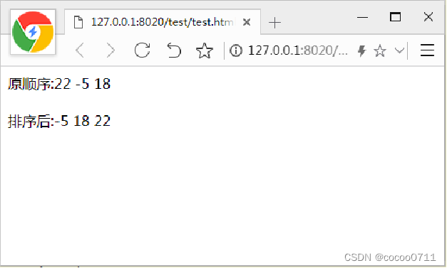 // 提示用户输入第一个数字,并将其保存在变量a中 var a = prompt("请输入第一个数字"); // 提示用户输入第二个数字,并将其保存在变量b中 var b = prompt("请输入第二个数字"); // 提示用户输入第三个数字,并将其保存在变量c中 var c = prompt("请输入第三个数字"); // 输出原始排序顺序 document.write("原排序:" + a + " " + b + " " + c + "<br><br>"); var t;//声明变量t的目的是为了在交换变量值时临时存储一个变量的值,以便在交换过程中不丢失该值 // 如果a大于b,交换它们的值 if (a > b) { t = a; a = b; b = t; } // 如果b大于c,交换它们的值 if (b > c) { t = b; b = c; c = t; } // 如果a大于c,交换它们的值 if (a > c) { t = a; a = c; c = t; } // 输出排序后的结果 document.write("排序后:" + a + " " + b + " " + c + "<br><br>");