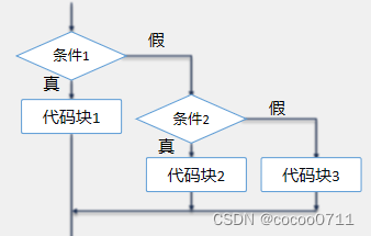 如果条件1的值为 true,则执行代码块1,否则继续判断条件2, 如果条件为true,则执行代码块2,如果条件2为false则执行else中的 代码块3
