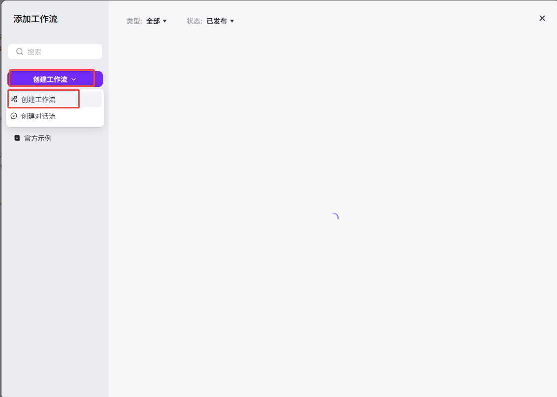 在编排项,点击“工作流”对应的“+”
