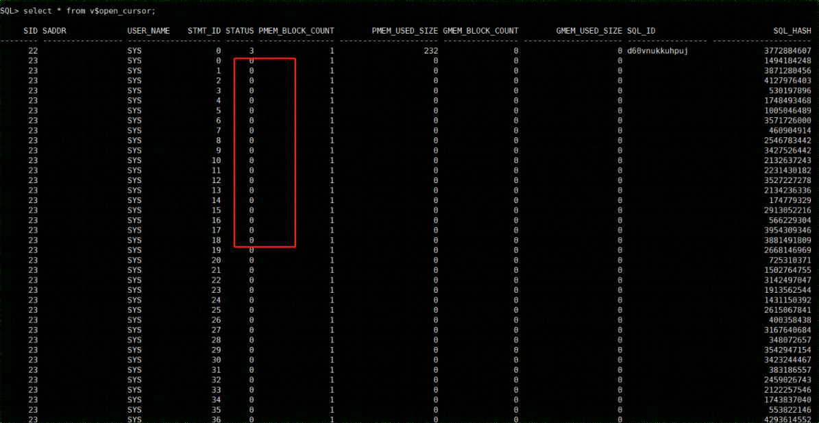 查看v$open_cursor视图