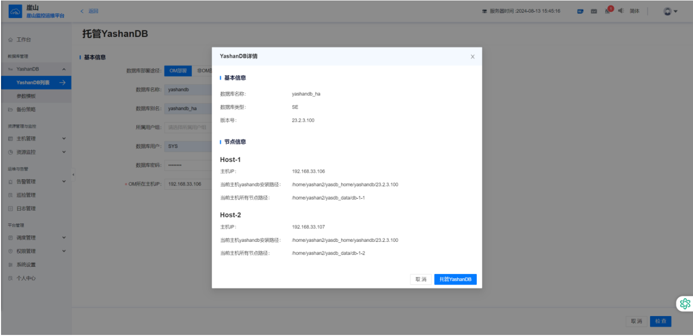 将192.168.33.168加入YCM后再次托管数据库,YCM报错host003 is not found in node map