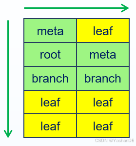 分支块:存储指向其下层数据块的指针,以及对应下层数据块的数据大小信息。最顶层的分支块又称根分支块。