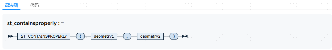 ST_CONTAINSPROPERLY函数的功能是判断geometry1是否完全包含geometry2,完全包含时返回TRUE,否则返回FALSE。与ST_CONTAINS不同的是,ST_CONTAINS(A,A) = TRUE,ST_CONTAINSPROPERLY(A,A) = FALSE。