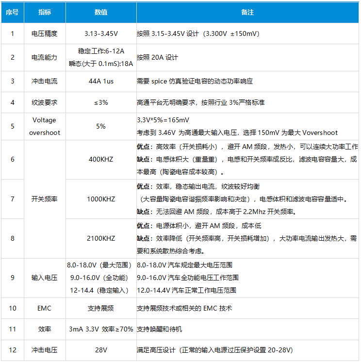表2:高通SA8295电源设计技术指标要求