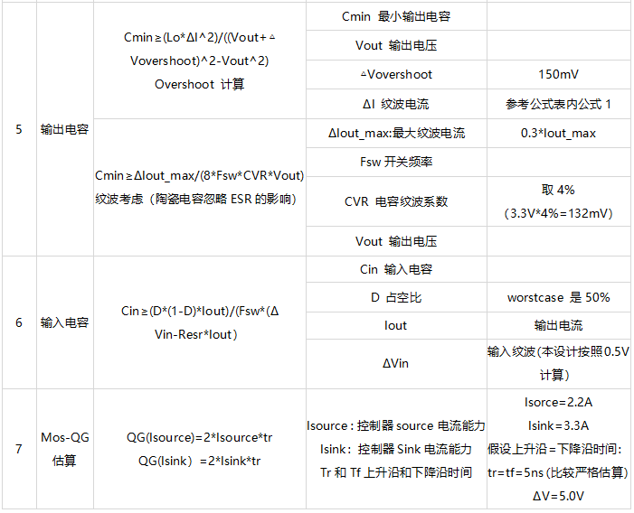 表5:同步BUCK电源设计计算公式