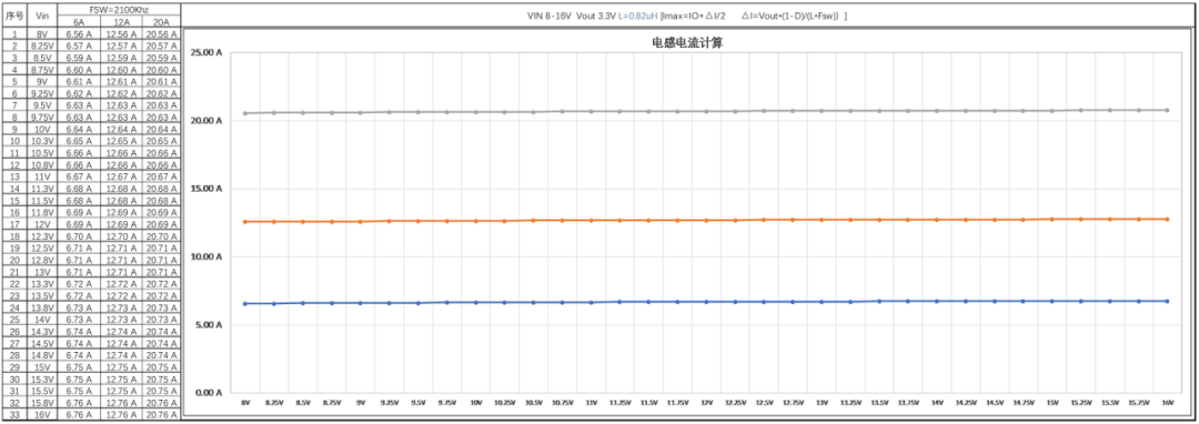 3.4.1 理论计算电感饱和电流≥20.76A, 取整21A: