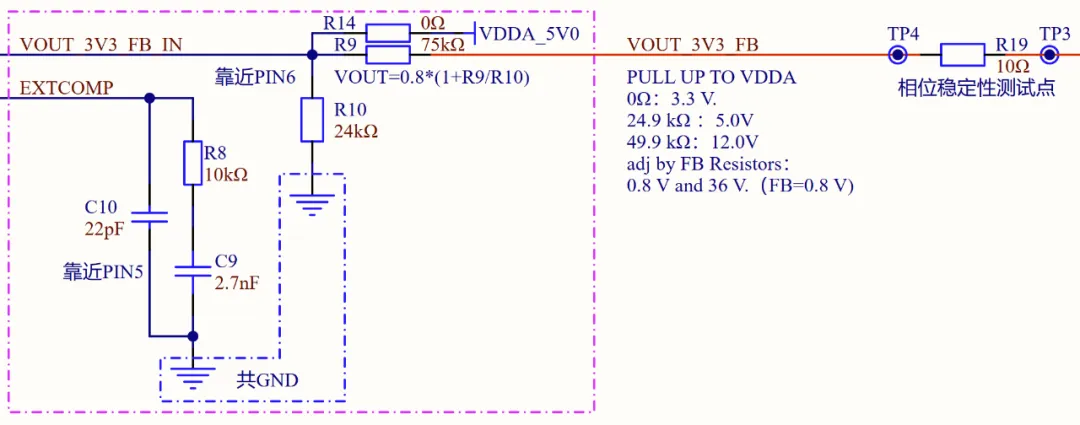R19和预留TP3,TP4:用于测试,相位余量,穿越频率等。