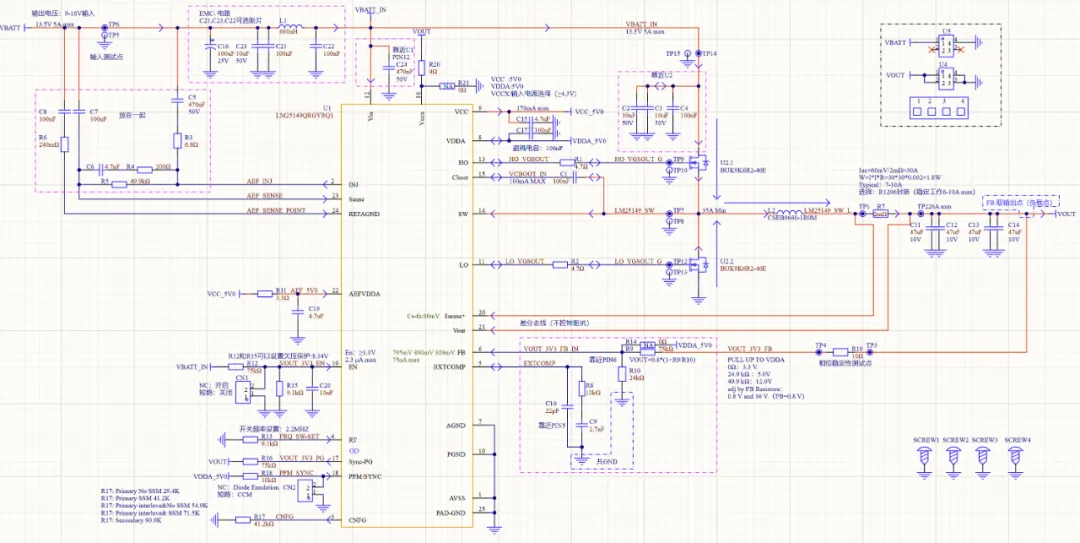原理设计参考LM25149-Q1规格书和官方开发板,设计符合BUCK 开关电源基础理论和高通域控制器一级电源设计要求。