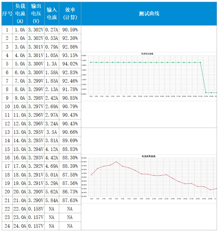 3. 负载电流能力:不同输出电流电压,效率曲线测试;