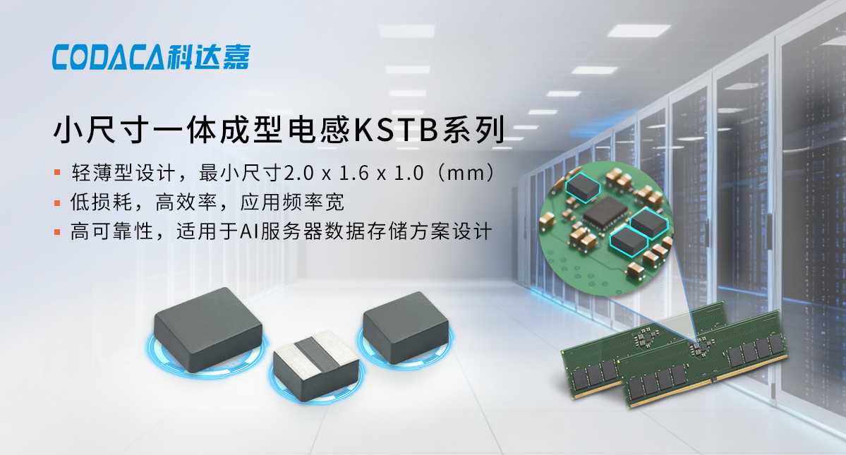 为满足终端客户对DDR5电感的需求,科达嘉通过自主研发和技术创新,推出多个系列小体积、高效率和低损耗电感产品。其中,KSTB系列一体成型电感凭借小尺寸、高功率密度、高可靠性等特点,精准匹配DDR5内存设计需求,助力DDR5的升级发展。