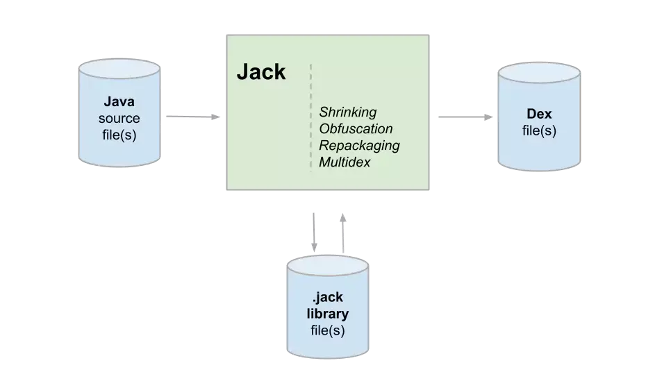 如上所示,Jack就是一种编译工具链,可以将Java 源代码编译为 DEX 字节码,使其可在 Android 平台上运行。