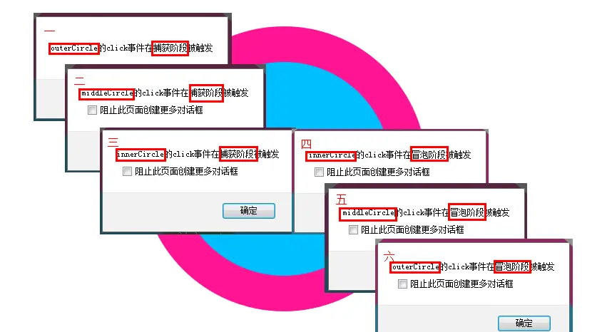 运行效果就是会陆续弹出6个框,为说明原理我整合成了一个图: