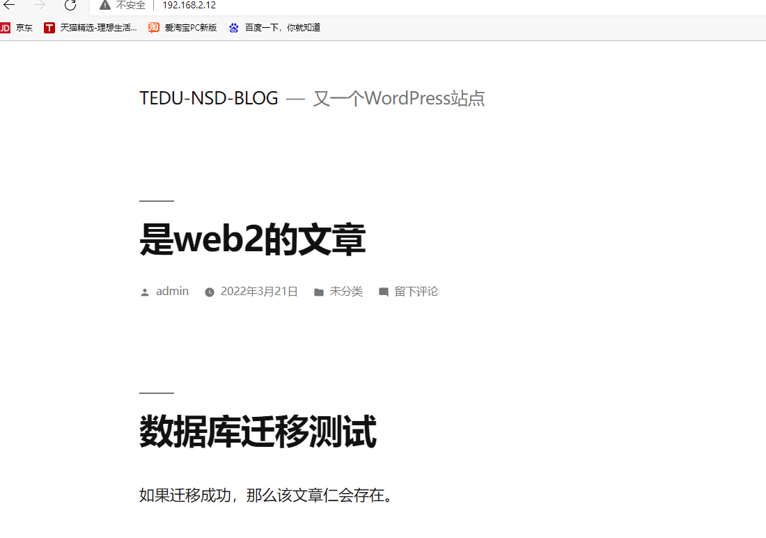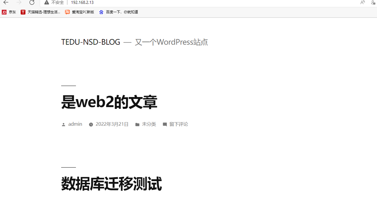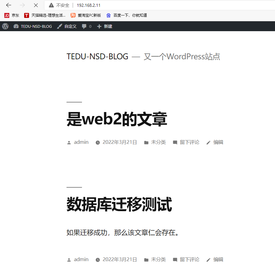 * 在web1、web2、web3上任意的一个页面上新建文章,另外的两台主机,也可以看到更新。因为3台web服务器新建文章时,都是把数据存入到数据库服务器了。