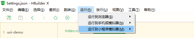 点击 【运行】 >> 【运行到小程序模拟器】>> 【运行设置】