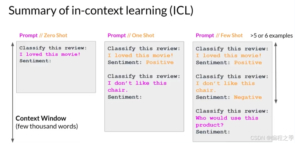 📌少样本推理(few-shot inference):多给几个不同类型的示例,更小的模型也能明白任务要求。
