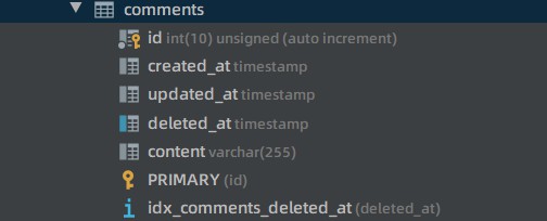 运行我们的项目就会发现数据库中已经新建立了表,如果我们想在建立的时候同时为 id 建立索引,我们可以对结构体 tag 上标明。如下